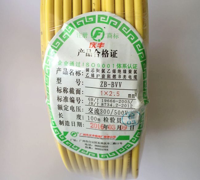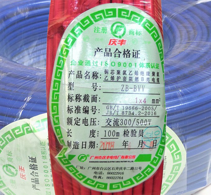廣州慶豐電線產品標簽