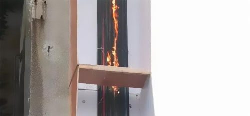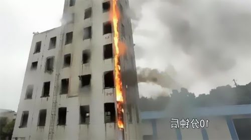 5分40秒,第四層電井電纜悉數燒起來,由于煙囪效應的原因,三層電井構成的熱空氣由于密度較低,在電纜井內得以往上活動,使高熱氣體不斷地在底部集合,使火勢更快的向上焚燒,不到10秒鐘的時刻第五層電井燃起大火。